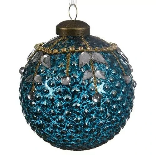 Шар стекло бирюзовый с листьями из страз d8см 3шт/уп